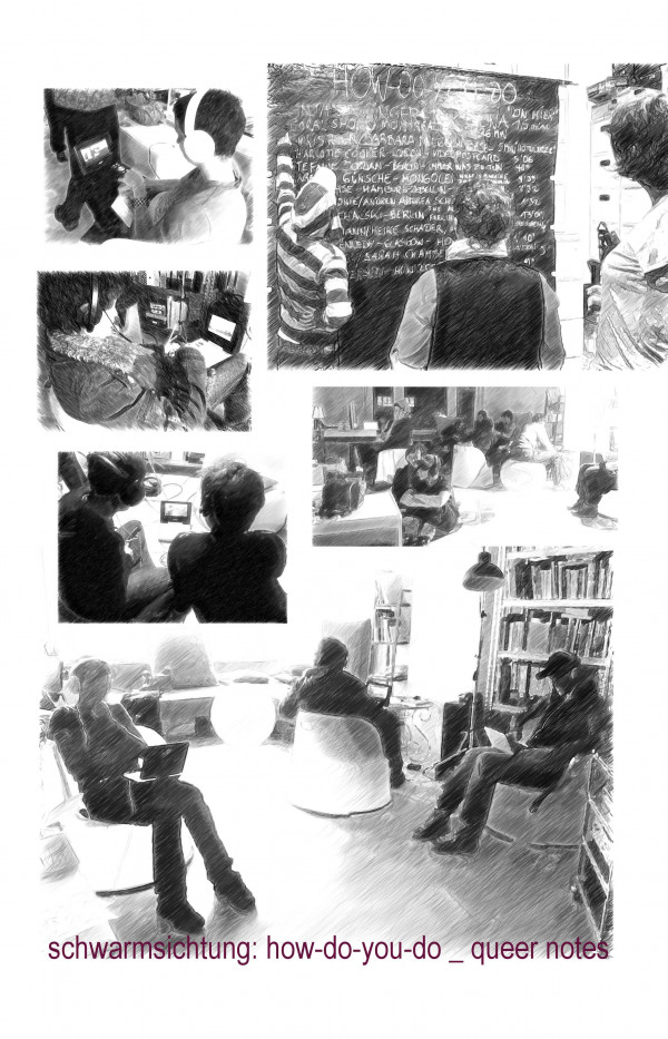 Why it's getting dark so early? In which direction our society will change? Who will I embrace in 10 and in 100 years? Where will it be? How will I name myself, if there won't be any norms of desire? What kind of terms will exist for quer Grand-mas and Grand-dads? How will we live and who will that "we" be? Will we build new communities? How? Didn't we already did that?! Do we want to go on with it? What do I want? Was it a good idea? What's about the good ideas that existed, exist and will come? This are just a few questions that the Bildwechsel Team ask themselves while curating the swarmscreening at Les Complices*.