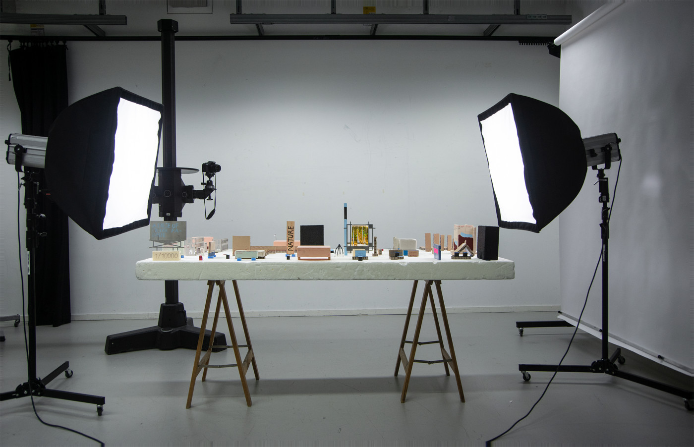 Left Wing Model is a sculptural study that explores power dynamics materializing as construction-like forms which function as the primary actors within the installation. It references the language of urban models and it includes other cultural systems, the personal ones, the experiential relations that Salmo has developed over the short time of living in a European city.