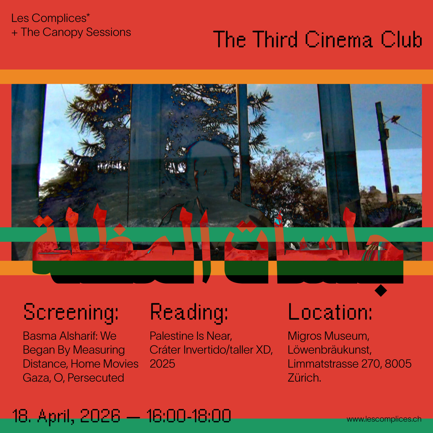 Basma Alsharif’s films resonate strongly with the exhibition’s focus on Archives in Revolt and Insurgent Communities. Through layered sound, found footage, and fragmented narrative, she approaches Palestine not as a fixed historical record but as a living archive shaped by displacement, memory, and political struggle. Works such as We Began by Measuring Distance and O, Persecuted engage with archival material and the circulation of images, while Home Movies Gazasituates political history within everyday domestic life. Paired with the collective text by Cráter Invertido/taller XD: Palestine Is Near from the exhibition’s reader at The Migros Museum, the programme invites reflection on proximity and solidarity, asking how struggles archived elsewhere resonate from our own geographies today.